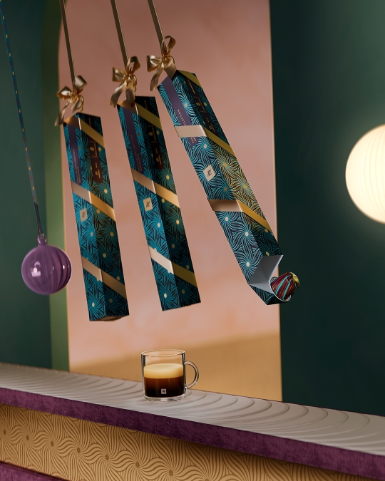 Uživajte v Nespresso FestiveCollectionEspresso, omejeni seriji vrhunskih arabic, ki nudi bogato in aromatično doživetje z notami žitaric in sadja, obogateno s subtilnimi lesnatimi in karamelnimi toni, kar jo naredi za popolno izbiro vaših prazničnih trenutkov.
