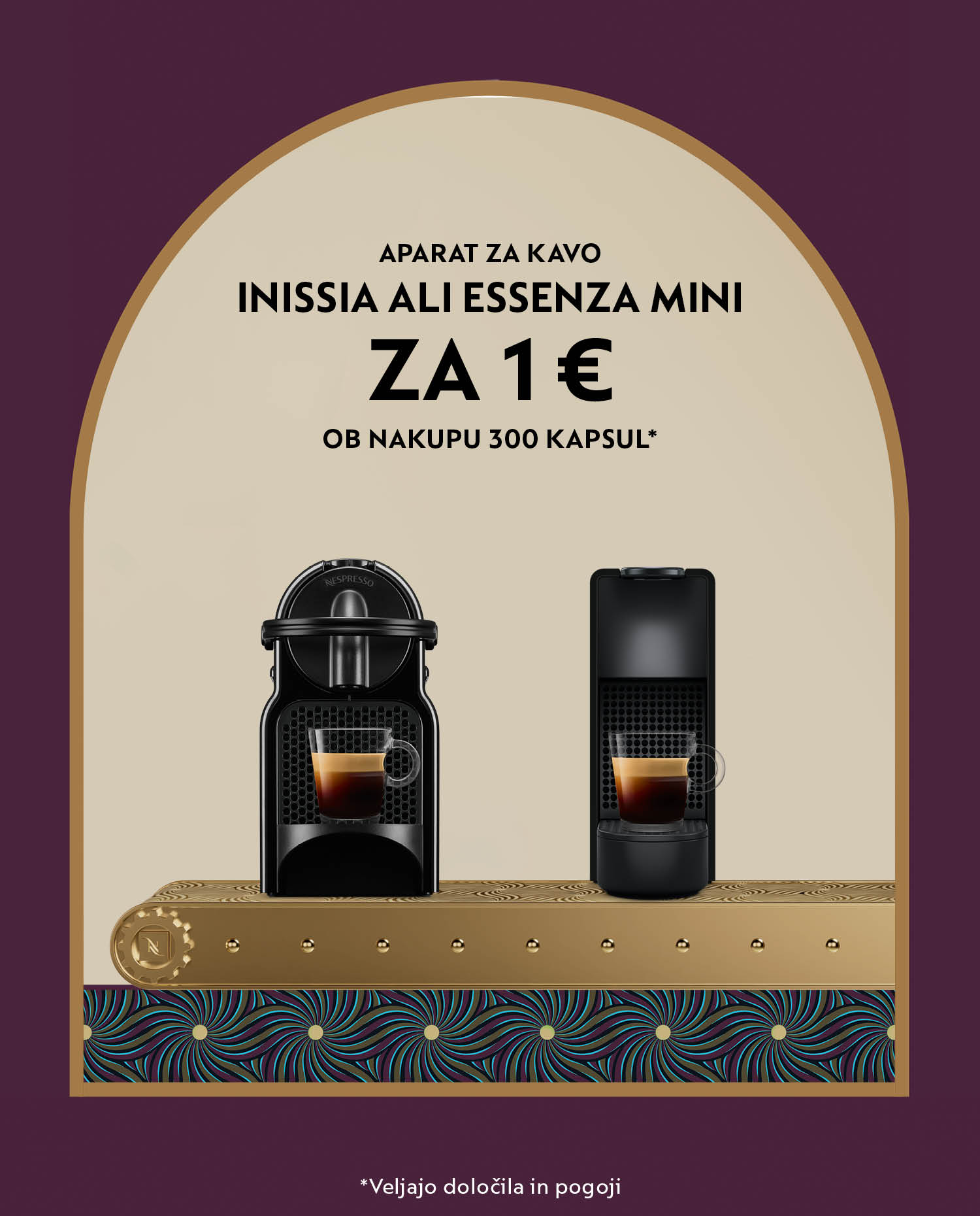 Znižani kavni aparati so označeni z nalepko. Določeni aparati v akciji morda začasno niso dobavljivi zaradi razprodaje zalog.