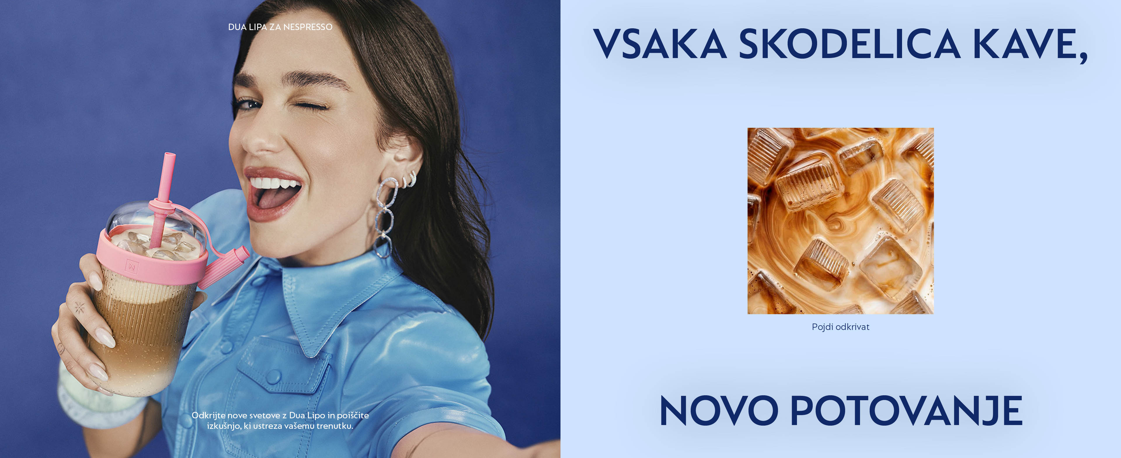 Več kot 40 vrhunskih in aromatiziranih kav v 7 velikostih skodelic, vročih, ledenih ali v receptih, z blagovnimi znamkami, ki jih je odobril Vertuo.