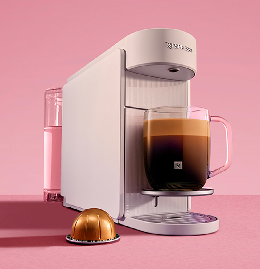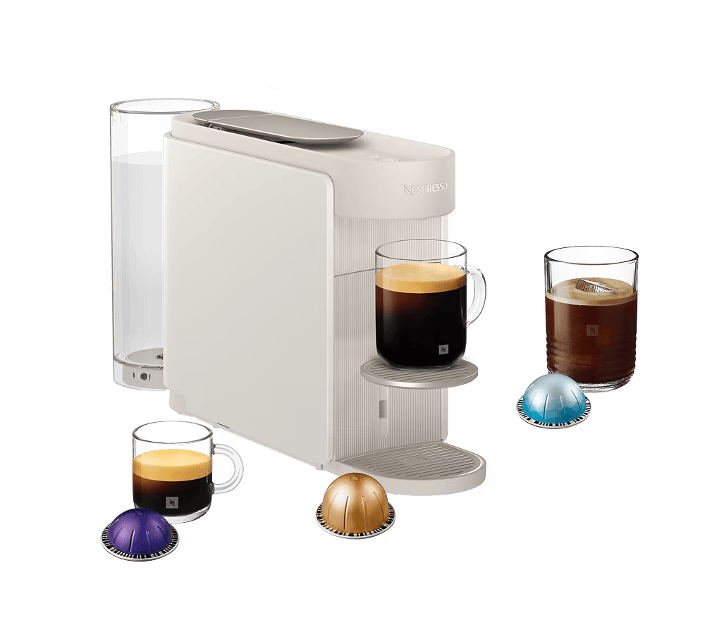 Over 40 premium and flavoured coffees in 7 cup sizes, hot, over ice, or in a recipe, featuring Vertuo-approved brands.