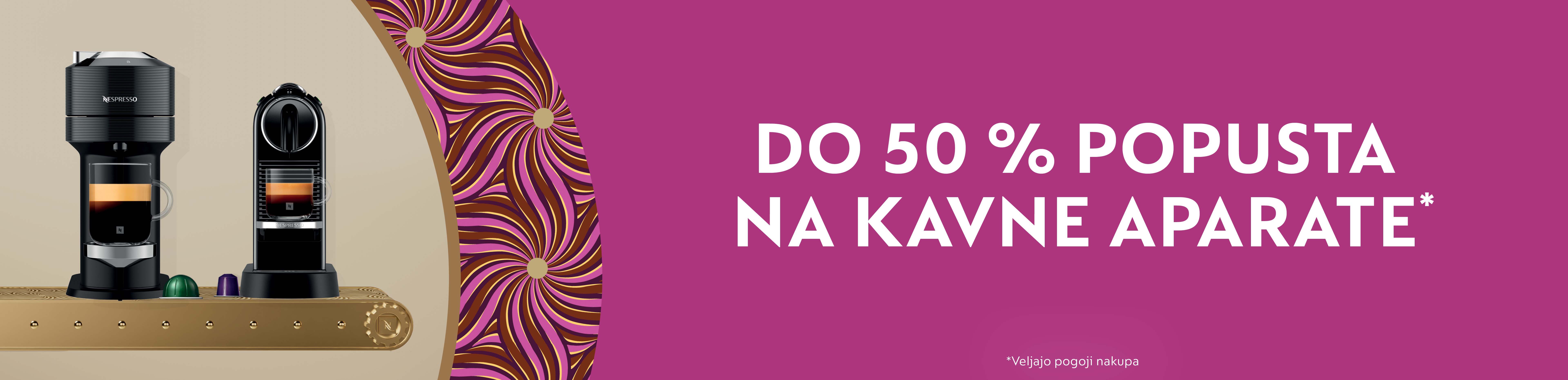 Znižani kavni aparati so označeni z nalepko. Določeni aparati v akciji morda začasno niso dobavljivi zaradi razprodaje zalog.